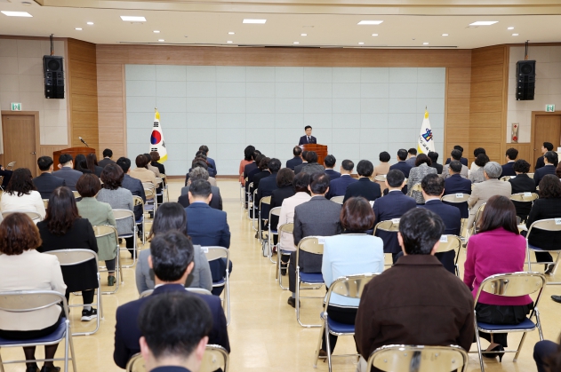 [메이저뉴스]윤건영 충청북도교육감이 3일 오전, 화합관에서 11월 월례조회를 개최했다.