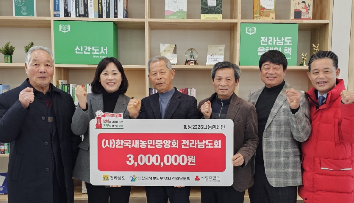 [메이저뉴스]전라남도는 7일 (사)한국새농민중앙회 전남도회가 연말연시 이웃사랑 실천을 위한 ‘희망2026 나눔캠페인’에 성금 300만 원을 전달했다고 밝혔다.