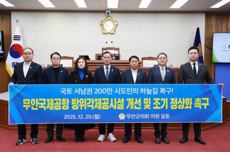 이에 군의회는 “정부가 명확한 정상화 로드맵 제시 없이 임시폐쇄 조치로만 일관해 지역민의 혼란과 불신만 키우고 있다”며, “무안공항의 장기 폐쇄는 관광·물류 산업을 가로막고 지역 종사자들의 생존권을 위협하는 것”이라고 호소했다.
