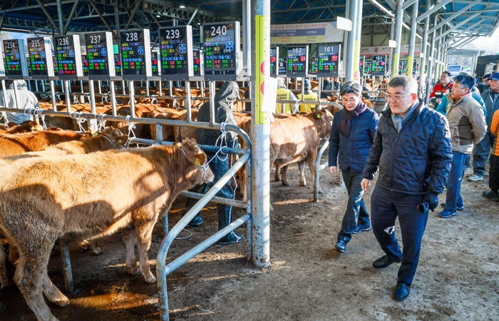 이날 가축시장에는 비육우 79두, 번식우 38두, 송아지 202두 총 319두의 가축이 거래되며 활발한 경매가 이뤄졌다. 특히 현장에서는 최근 한우 가격 흐름과 함께 경매 진행 과정, 농가 이용 실태 등에 대한 점검이 함께 진행됐다.