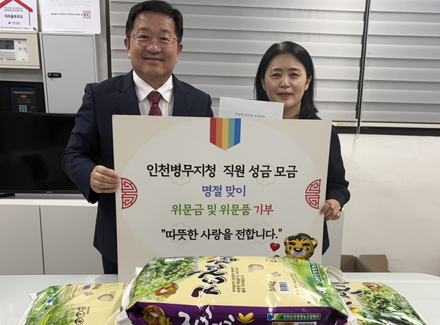 인천병무지청은 지난 24일 미추홀푸르내를 방문해 추석 맞이 선물을 전했다. 성금과 물품은 사내 2개 봉사동아리 회원들이 매월 십시일반 모은 돈으로 마련했다. 앞서 지난 1월 설을 앞두고 미추홀푸르내를 처음 방문해 후원금과 기부 물품을 전달했다. 이를 시작으로 매년 설과 추석 두 차례 기부하기로 약속했다. 인천병무지청은 미추홀푸르내 외에도 미추홀구 내 사회복지시설과 행정복지센터 등에 기부와 봉사활동을 해오고 있다.