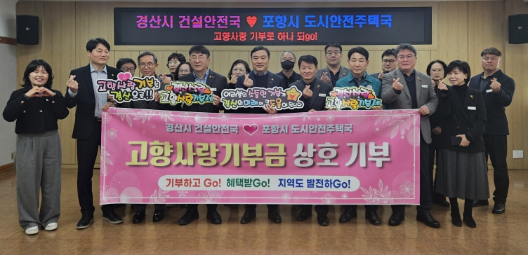 [메이저뉴스]경산시는 9일 경산시 건설안전국 직원과 포항시 도시안전주택국 직원들이 총 700만 원의 고향사랑기부금을 상호 기부하며 연말 고향사랑기부 분위기 확산에 나섰다고 밝혔다.