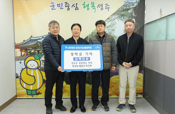 [메이저뉴스]지난 19일 성주군 쌀전업농회 회원 방경용 · 배점호 · 탁진열씨가 지역인재를 위한 장학금 각 1백만원씩 총3백만원을 (재)성주군별고을장학회에 기탁했다.