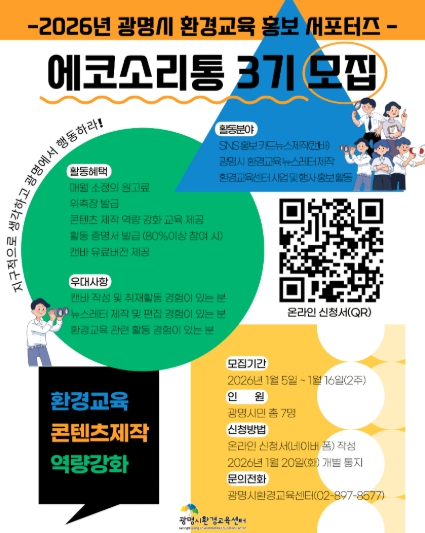 | ▲ 2026년 광명시 환경교육 홍포서포터즈 '에코소리통 3기' 모집 안내문. |