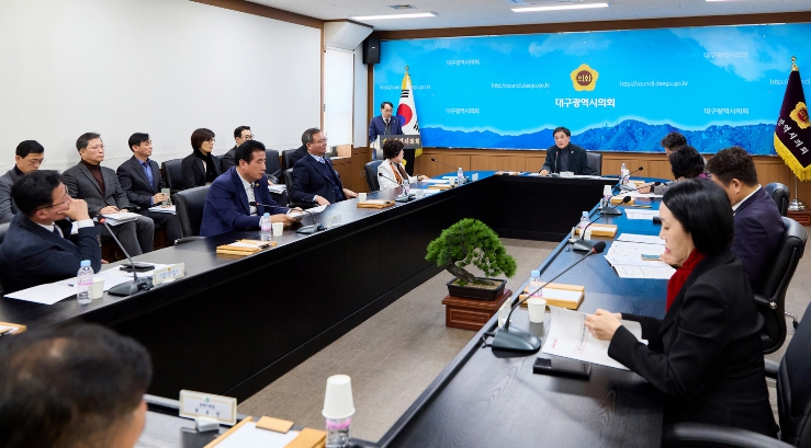 [메이저뉴스]대구광역시의회는 2월 12일 국회 행정안전위원회를 통과한 대구경북 행정통합특별법 수정안과 관련하여 긴급 확대의장단 회의를 개최해 특별법의 주요 쟁점과 향후 대응 방향을 논의했다.