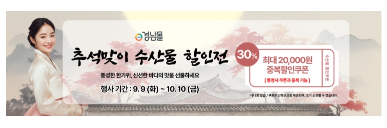 [메이저뉴스]경상남도는 추석 명절, 도내 우수 수산물 소비를 촉진하고 어업인 소득을 높이기 위해 온오프라인 소비 촉진 행사를 개최한다. 이번 행사는 온라인몰 특별 할인 기획전과 전통시장 온누리 상품권 환급행사를 중심으로 진행하며, 다채로운 혜택을 제공한다.