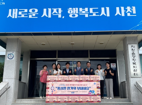 황현충 사천읍장은 “매년 이웃들에게 나눔의 손길을 전해주셔서 정말 감사하다”며 “정성껏 준비해주신 물품은 이웃들이 풍성한 한가위를 보낼 수 있도록 잘 전달하겠다”고 말했다.