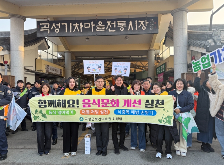 이번 캠페인은 곡성 기차마을 전통시장에서 진행됐으며, 군은 음식문화 개선을 위한 ‘5대 수칙’을 중심으로 적극적인 홍보 활동을 전개했다.