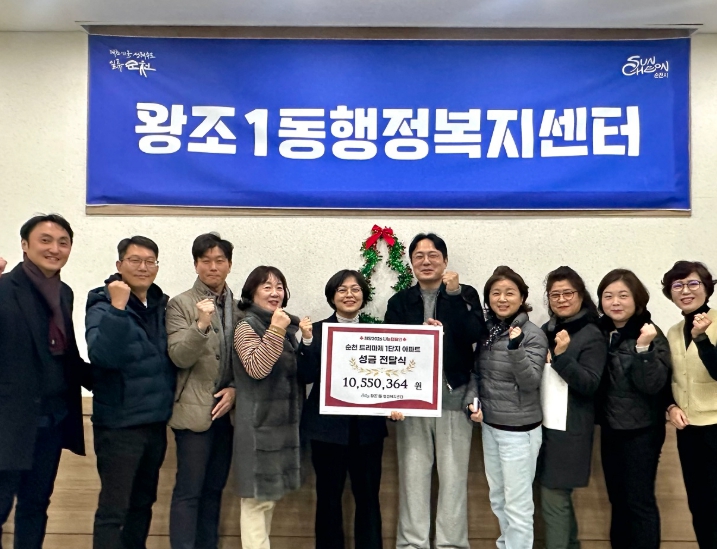 [메이저뉴스]순천시 왕조1동 트리마제 순천 1단지 아파트 주민들이 희망2026 나눔캠페인을 통해 이웃돕기 성금 1천55만원을 모금해 기부했다.