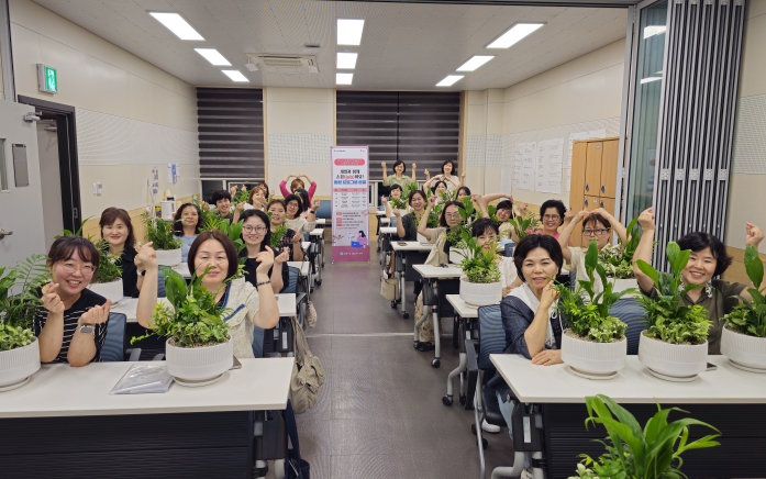 | ▲ 지난 9월 18일 광명시여성새로일하기센터 너른교실에서 '새일과 손잡(job)아요! 힐링 프로그램'을 진행하고 기념사진을 촬영하고 있다. |