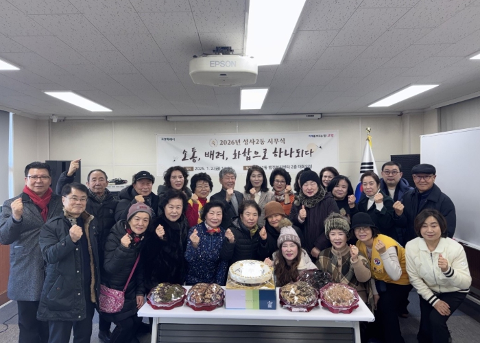 [메이저뉴스]고양특례시 덕양구 성사2동 주민자치회는 2026년 병오년 새해를 맞아 지난 2일, 행정복지센터 대회의실에서 ‘소통, 배려, 화합으로 하나 되다.’를 표어를 내걸고 시무식을 개최하며 힘찬 출발을 알렸다.