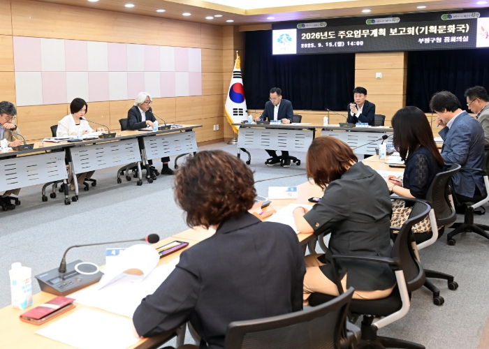 [메이저뉴스]부평구는 지난 15일부터 18일까지 8회에 걸쳐 차준택 구청장 주재로 6개의 국과 보건소, 담당관·관 및 시설관리공단, 문화재단의 간부공무원이 참석한 가운데 ‘2026년도 주요업무계획 보고회’를 개최했다고 밝혔다.