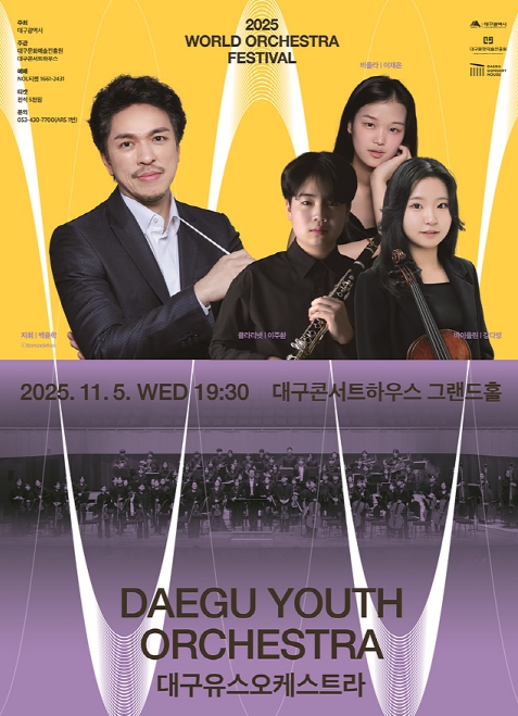 [메이저뉴스](재)대구문화예술진흥원 대구콘서트하우스는 오는 11월 5일 저녁 7시 30분, 그랜드홀에서 ‘2025 월드오케스트라페스티벌’의 일환으로 대구유스오케스트라의 공연을 개최한다.
