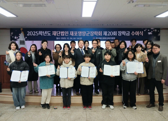 [메이저뉴스]경상북도영양교육지원청은 12월 24일 관내 초등학교 6명을 대상으로 재단법인 재포영양군장학회가 주관하는 2025학년도 재단법인 재포영양군장학회 제20회 장학금 수여식을 영양교육지원청 3층 대회의실에서 실시했다.