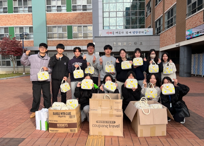 [메이저뉴스]11월 11일, 군위군청소년수련원(원장 박동찬)은 2026학년도 대학수학능력시험을 치르는 수험생들을 격려하고 응원하기 위해 지역 내 군위고등학교(교장 이현정)를 방문했다. 특별히 이번 방문은 군위군청소년수련원 청소년운영위원회 '세 잎 클로버'가 함께 준비한 ‘응원 물품 꾸러미’를 전달해 그 의미를 더했다.