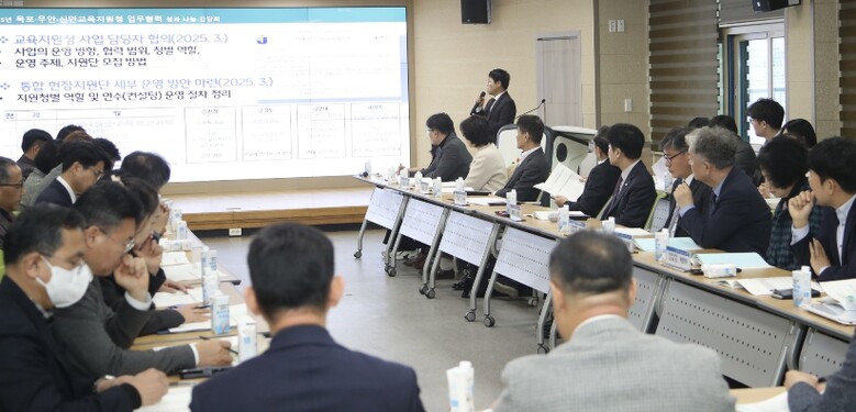 이러한 성과를 바탕으로 전라남도교육청은 24일 목포교육지원청에서 ‘목포·무안·신안 교육지원청 업무협력 사례 공유 간담회’를 열고, 학교 지원 중심의 교육지원청 협력 방향을 집중 논의했다.