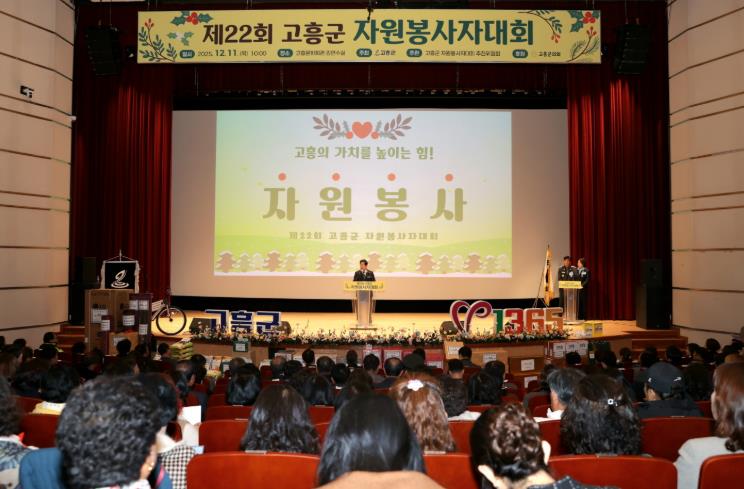 [메이저뉴스]고흥군은 11일 고흥문화회관에서 500여 명이 참여한 가운데 한 해 동안 다양한 분야에서 봉사와 나눔을 실천한 이들을 격려하기 위해 ‘제22회 고흥군 자원봉사자대회’를 개최했다고 밝혔다.
