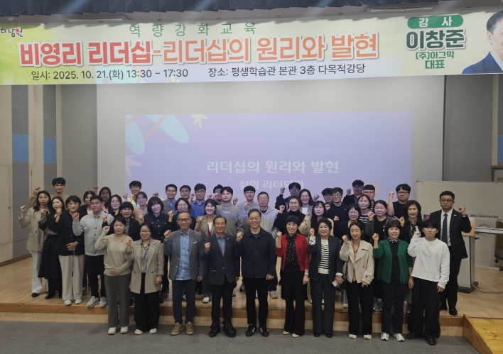 [메이저뉴스]남원시는 10월 21일 오후 1시 30분부터 평생학습관 3층 다목적 강당에서 민간사회복지 종사자 70여명이 참석한 가운데 '비영리 리더십 – 리더십의 원리와 발현'을 주제로 2025년 민간사회복지사 역량강화교육 5회차 마지막 교육을 성황리에 마쳤다.