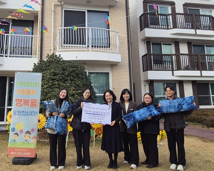 나주 이화영아원 기세순 원장은 “청년들이 정성을 담아 만든 전통 쪽염색 베개는 아이들에게 소중한 선물이 될 것”이라며 “이러한 따뜻한 나눔이 지역사회에 큰 울림을 준다”고 화답했다.