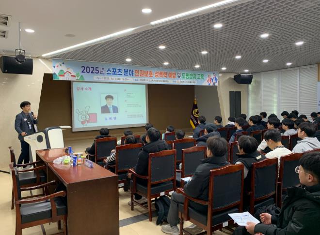 이번 교육은 씨름부, 육상부, 야구부, 컬링부 등 총 112명의 학생이 참석했으며, 한국도핑방지위원회 전문 강사를 초청해 △도핑의 개념과 유형 △금지약물 및 부작용 △도핑검사 절차 △선수 건강 보호와 클린스포츠 실천 방안 등을 중심으로 진행됐다.