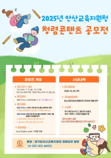 [메이저뉴스]경기도안산교육지원청은 9월 22일부터 10월 21일까지 한 달간 ‘2025년 청렴 콘텐츠 공모전’을 개최한다고 밝혔다.