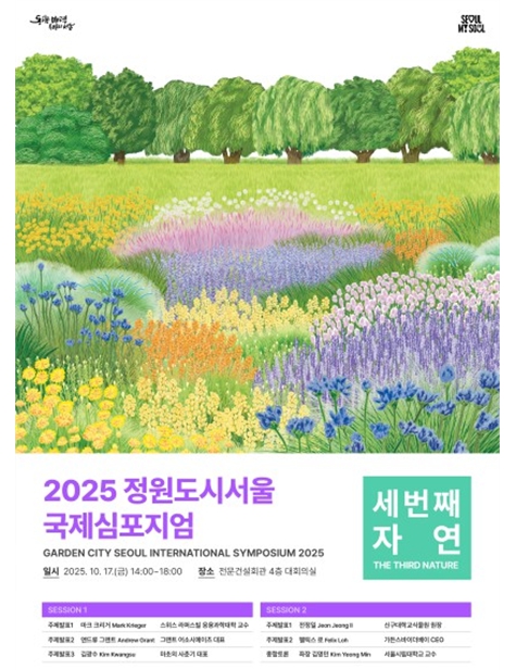 [메이저뉴스] 서울시는 오는 17일 동작구 전문건설회관 대회의실에서 자연과 도시의 조화와 공존, 정원의 미래 역할 등에 대해 논의하는'2025 정원도시서울 국제심포지엄'을 개최한다. ‘세 번째 자연’을 주제로 정원‧조경 분야의 국내외 전문가들이 한 자리에 모일 예정이다.