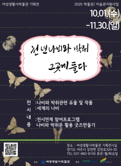 [메이저뉴스]여주시에서 진행하는 2025년 박물관·미술관 지원사업의 일환으로 여성생활사박물관의 ‘천년 나비와 박쥐 그곳에 들다’ 전시가 10월 1일부터 11월 30일까지 개최된다.