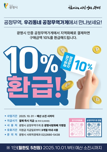 박승원 광명시장은 “공정무역과 지역화폐를 결합한 이번 사업은 시민들의 착한 소비 문화를 확산시키고 지역경제의 선순환을 강화하는 중요한 계기가 될 것”이라며 “앞으로도 시민과 함께 사회적 가치를 실현할 수 있는 다양한 정책을 지속적으로 추진하겠다”고 말했다.