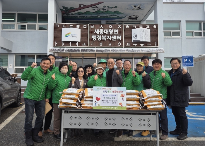 세종대왕면 새마을지도자 회원들은 지속적으로 이웃사랑을 실천하고 있으며 지역사회에 대한 관심과 주변의 어려운 이웃을 위해 쌀을 후원했다.