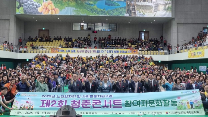 [메이저뉴스]옥천군이 노인 일자리 및 사회활동 지원사업에 참여 중인 어르신들을 위한 문화행사 ‘제2회 청춘콘서트’를 13일 옥천체육센터에서 2,000여 명의 참여자를 대상으로 성황리에 개최했다.