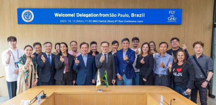 [메이저뉴스]경상국립대학교는 브라질 상파울루시 대표단이 10월 13일 오전 경상국립대학교를 내방하여 권진회 총장을 예방하고 우주항공, 문화콘텐츠, 미디어 분야의 협력 방안을 논의했다고 밝혔다.