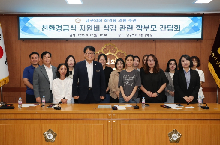 이번 간담회를 주관한 최덕종 의원은 “올해 초 갑작스런 친환경 급식 식자재 배송비 약 2억 4천만원 삭감으로 급식비 수수료율이 약 8.5% 인상됐다”며 “전보다 비싸진 친환경 식재료를 선뜻 구입하기 어려워진 학교들은 결국 일반 농산물을 선택할 수밖에 없는 상황으로 이는 결국 남구 친환경 급식 지원 정책의 심각한 후퇴”라고 지적했다.