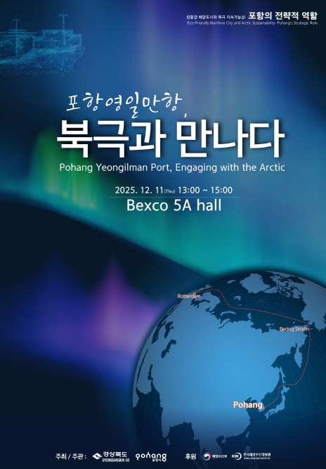 [메이저뉴스]포항시는 오는 11일 오후 1시부터 3시까지 부산 벡스코 제2전시장 5A홀에서 ‘2025 북극협력주간(APW) 포항 영일만항 세션’을 운영한다고 밝혔다.