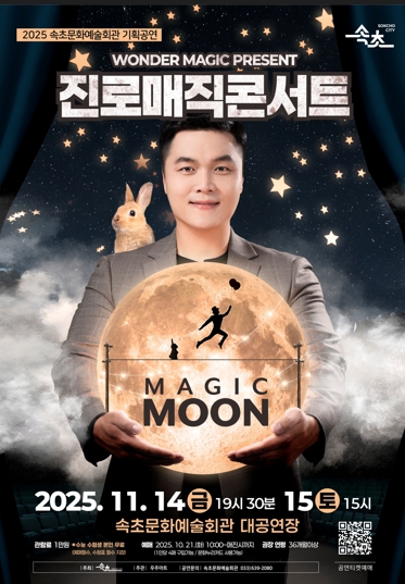 [메이저뉴스]속초시는 오는 11월 14일 금요일과 11월 15일 토요일 이틀간 속초문화예술회관에서 최형배 마술사의 진로매직콘서트 MAGIC MOON을 선보인다.