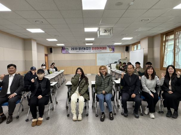 [메이저뉴스] 성주군 농업기술센터는 11월 27일, 지역 청년농업인 17명이 참석한 가운데 실무 중심의 교육과정인 ‘2030 청년농업인 양성아카데미’개강식을 개최했다.