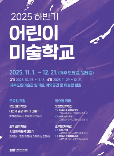 [메이저뉴스] 제주특별자치도 도립미술관(관장 이종후)은 10월 25일부터 12월 21일까지 ‘2025 어린이 미술학교’ 하반기 교육프로그램을 운영한다.
