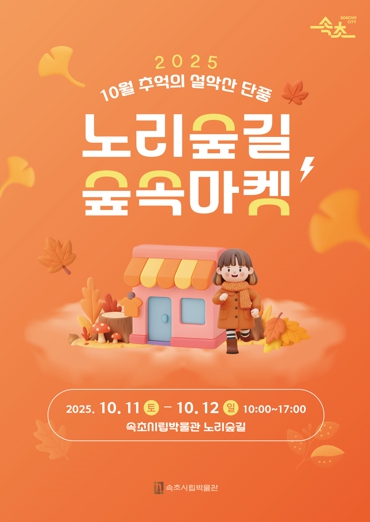 [메이저뉴스]속초시립박물관이 2025년 10월 11일부터 12일까지 오전 10시부터 오후 5시까지 박물관과 노리숲길 일원에서 ‘2025년 10월 노리숲길 숲속마켓’을 연다. 입장료는 무료다.