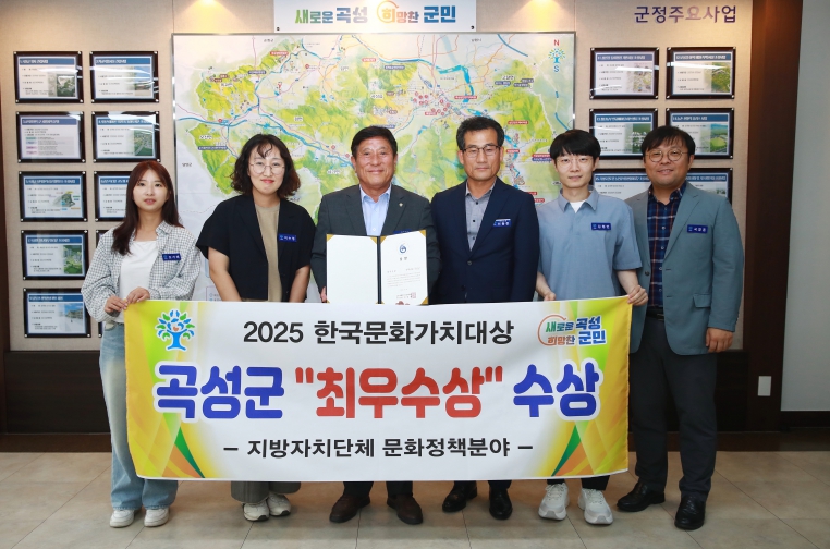 [메이저뉴스]곡성군이 ‘2025 한국가치문화대상’에서 2년 연속 최우수상을 받으며 지역 문화정책의 우수성을 다시 한번 인정받았다.