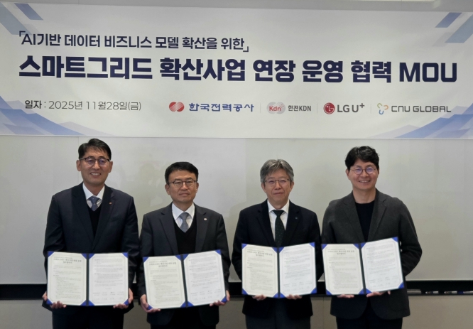 한전은 11월 28일 LG유플러스 본사에서 한전KDN, LG유플러스, 씨앤유글로벌과 함께 스마트그리드(Smart Grid, 이하 SG) 확산사업을 ’26∼’30년까지 연장 운영하기 위해『SG확산사업 연장 운영 업무협약』을 체결했다.