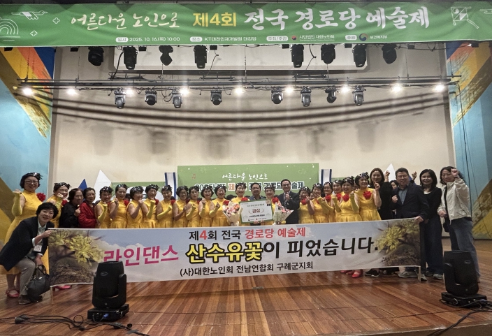 [메이저뉴스]전남 구례군 노인회(라인댄스팀)는 (사)대한노인회가 주관한 2025년 제4회 전국 경로당 예술제에서 전라남도 대표로 참가해 금상을 받았다고 밝혔다.
