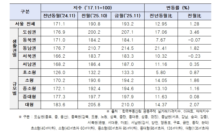 '서울 전역 실거래 정보 공개…11월 서울 아파트 ‘매매 실거래가’ 1.28% 상승'