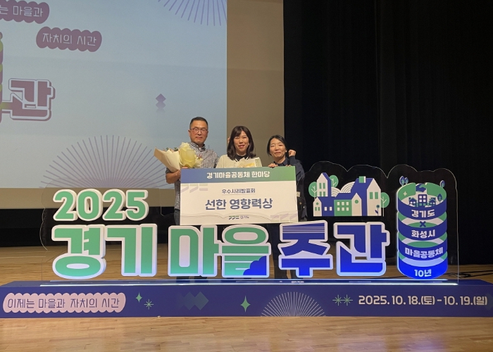| ▲ ‘2025 경기마을공동체 한마당’우수사례발표회 선한 영향력상 수상 기념촬영 |