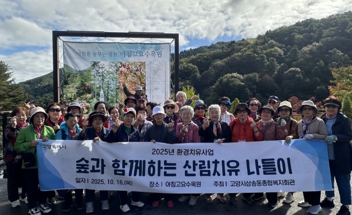 [메이저뉴스]고양시삼송동종합복지회관은 지난 16일, 환경치유사업의 일환으로 저소득 홀몸어르신 및 노인맞춤돌봄서비스 대상자 30명과 함께 가평 아침고요수목원에서 ‘숲과 함께하는 산림치유 나들이’ 행사를 진행했다.