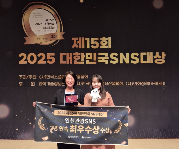 [메이저뉴스]인천광역시와 인천관광공사(사장 백현)는 인천관광 SNS가‘2025 대한민국 SNS 대상’ 공공부문에서 최우수상을 수상하며, 2년 연속 수상의 영예를 안았다고 밝혔다.
