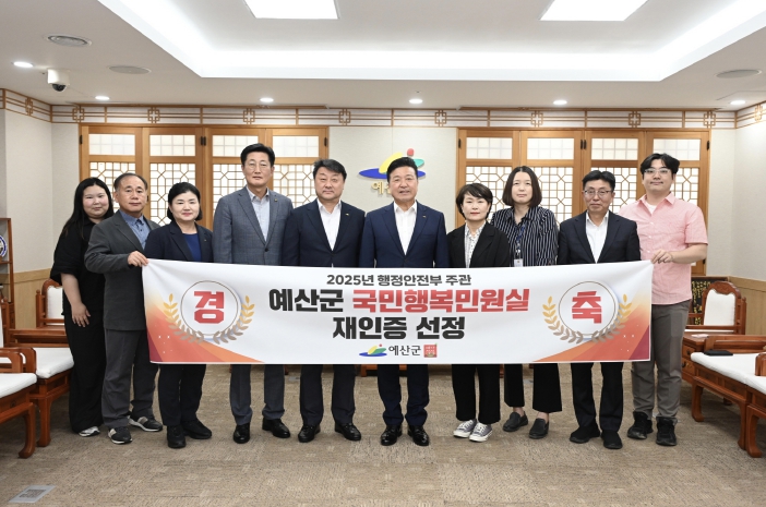 [메이저뉴스] 예산군은 행정안전부가 주관하는 ‘2025년 국민행복민원실’ 평가를 통과해 재인증 기관으로 선정됐다고 17일 밝혔다.