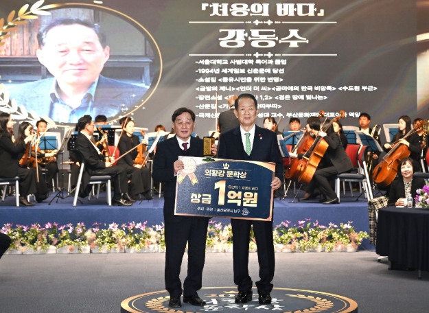 [메이저뉴스] 울산 남구는 15일 6층 대강당에서 ‘외황강 역사문화권 장편소설 전국 공모전(외황강 문학상)’ 시상식을 개최하고 당선작으로 강동수 작가의‘처용의 바다’를 선정했다.