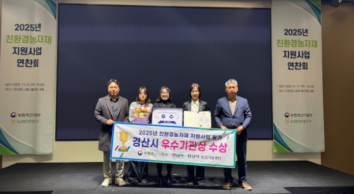 [메이저뉴스]경산시는 27일 세종시 코트야드 메리어트에서 열린 농림축산식품부 주관의 2025년 친환경농자재 지원사업 연찬회에서 '친환경농자재 지원사업 평가' 우수 기관상을 수상했다고 밝혔다.