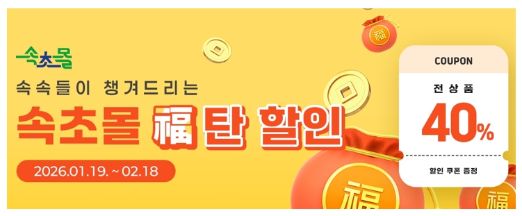 | ▲ 속초몰, 설맞이 전 상품 40% 할인쿠폰 발급 이벤트 실시 |
