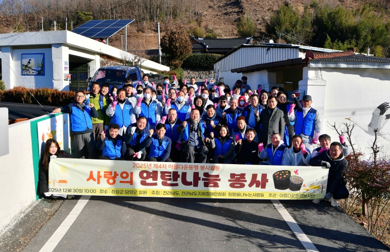 [메이저뉴스]장성군이 훈훈한 나눔 소식을 전했다. 군에 따르면 30일 오전 (사)전남지체장애인협회 회원 등 100여 명이 연탄 1200장을 장성읍·황룡면 소재 저소득 가구 5곳에 전달했다.