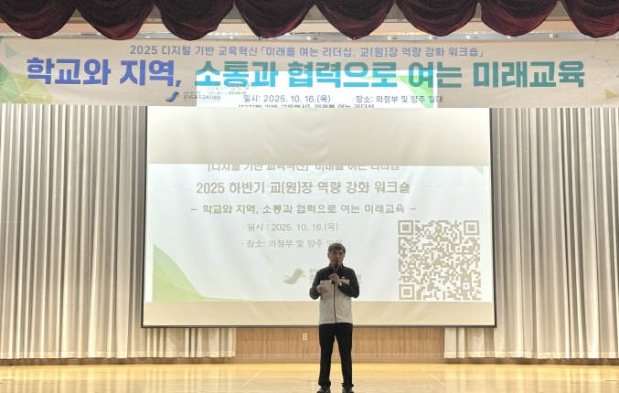 [메이저뉴스]파주교육지원청은 10월 16일 의정부공유학교 올래캠퍼스에서 관내 단설유치원․초․중․고․특수학교 교(원)장 101명을 대상으로‘미래를 여는 리더십, 교(원)장역량 강화 워크숍’을 운영했으며, 10월 30일에는 교(원)감 110명을 대상으로 워크숍을 실시할 예정이다.